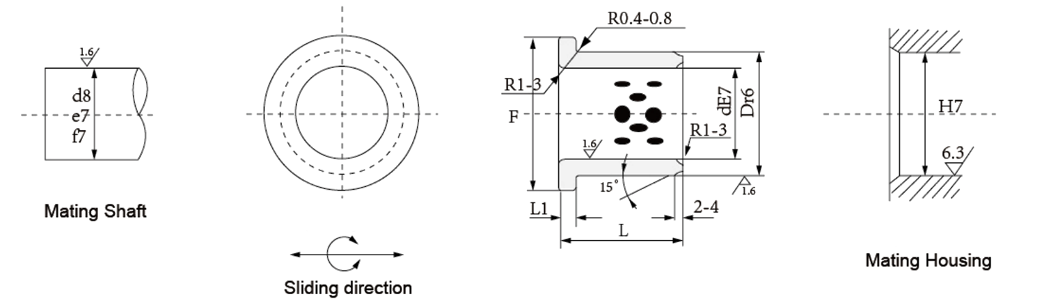 Grafitno-bakrena čahura s prirubnicom HZ-JFB integrira ugrađeni grafit za samopodmazivanje u prašnjavim, suhim ili visokim toplinskim uvjetima. Njegov dizajn s prirubnicom sprječava aksijalno pomicanje i pojednostavljuje ugradnju u pumpe, transportne trake ili upravljačke sklopove automobila. Bakreno-grafitna matrica smanjuje trenje i trošenje, dok prirubnica poboljšava raspodjelu opterećenja i točnost poravnanja.